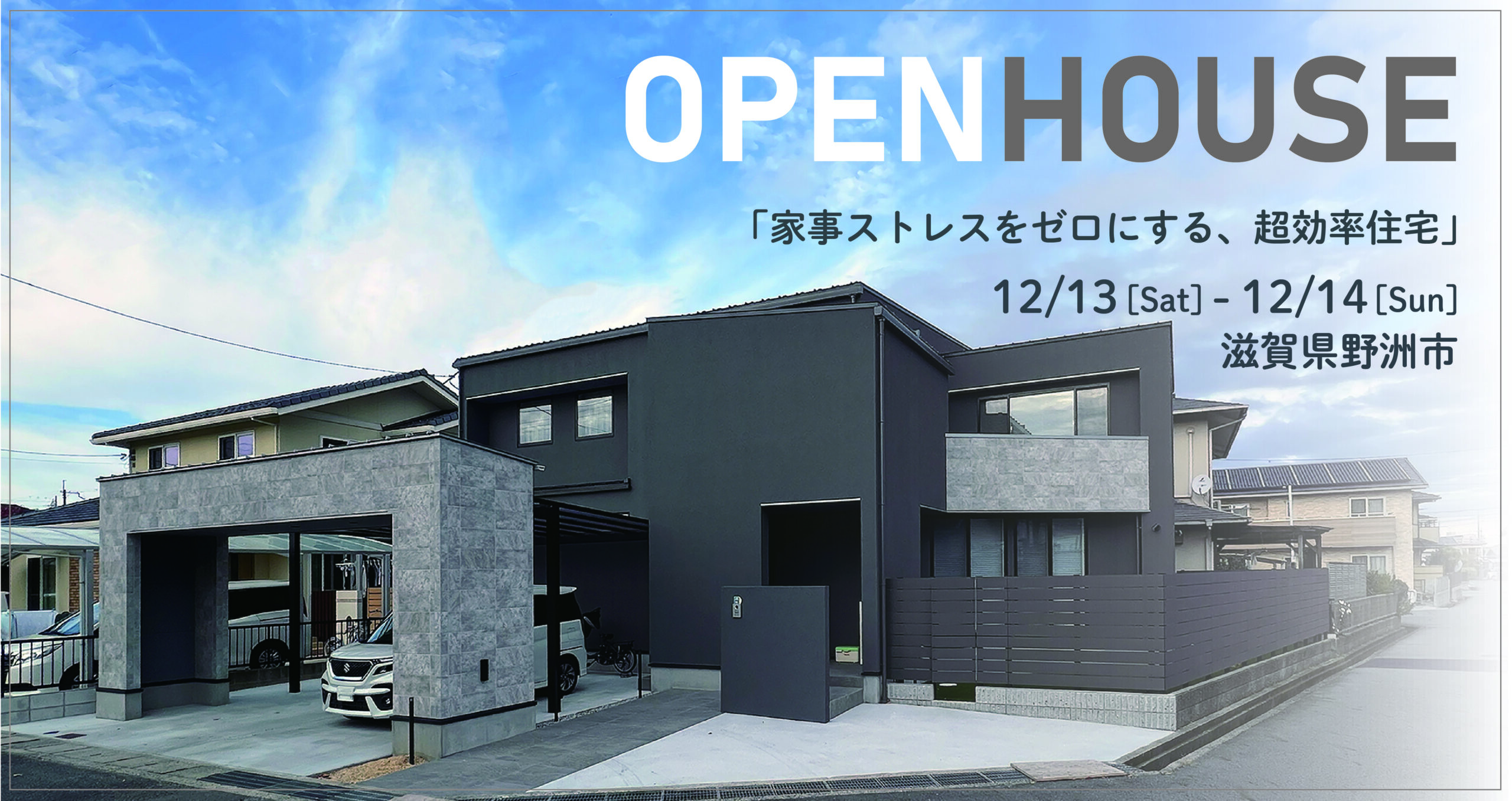 [OPENHOUSE]野洲市「家事ストレスをゼロにする、超効率住宅」完成見学会 12月13日[土]- 14日[日]