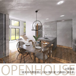 [OPENHOUSE]草津市「高天井の開放感と、DEN(隠れ家)の静寂に浸る家」完成見学会 1月24日[土]- 25日[日]